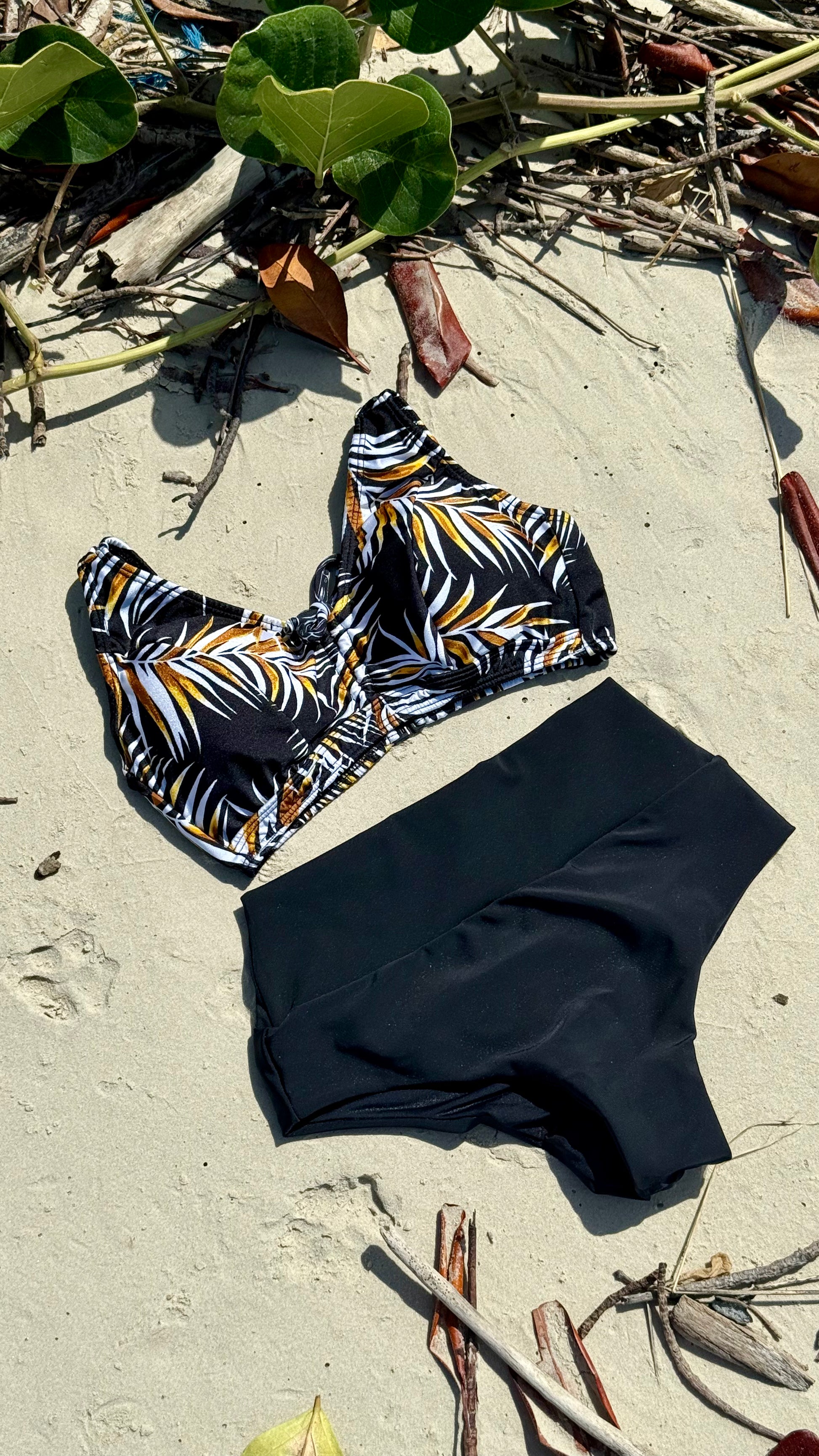 Imagine-se em um dia de sol, caminhando pela areia com conforto e estilo. O Biquíni Top com fecho foi criado para valorizar suas curvas com elegância. A parte de cima ajustável com bojo removível oferece busto altamente estruturado, regulagem frontal, alças retas e fecho de plástico nas costas, garantindo ajuste perfeito. A calcinha hot pant fio duplo com efeito empina bumbum combina parte superior estampada e parte inferior lisa, confeccionada em tecido firme e macio, equilibrando modernidade e sofisticação, ideal para momentos de lazer e confiança.