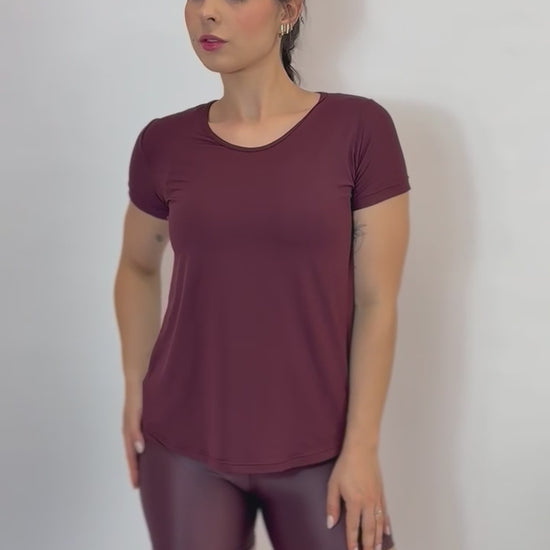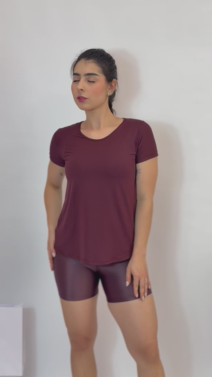 Confeccionada em tecido dry fit leve e macio, possui mangas curtas, gola redonda clássica e modelagem alongada, que oferece um caimento sofisticado e liberdade de movimento. Ideal para treinos, caminhadas ou composições casuais com toque esportivo.