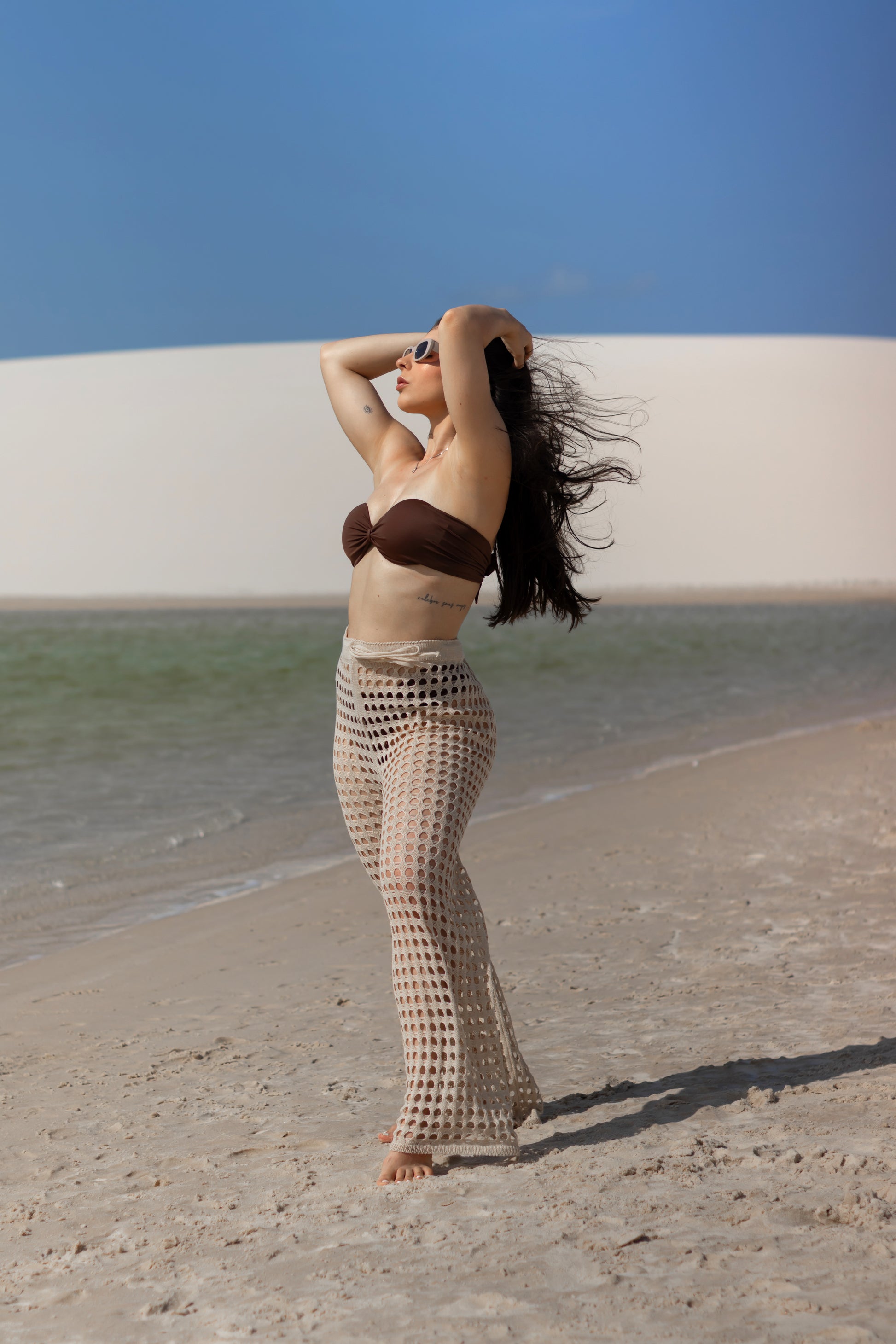Sinônimo de sofisticação e conforto, esta calça de tricot é a peça-chave para um visual elegante e descontraído. O tecido macio e com caimento impecável valoriza o corpo, enquanto o ajuste na cintura garante um encaixe perfeito. Ideal para um look relaxado e cheio de estilo, ela transita do dia para a noite com facilidade.