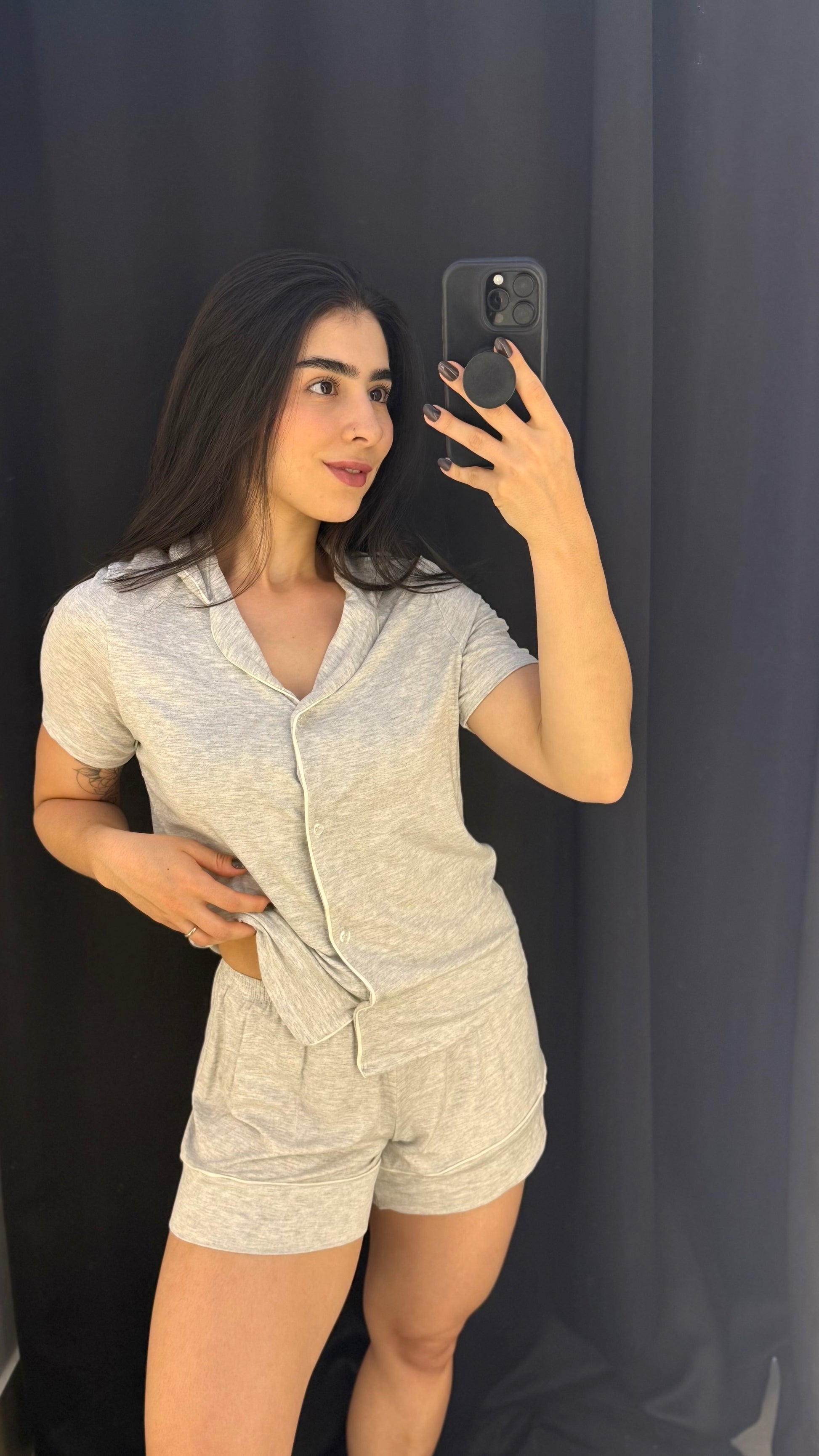 Elegante e atemporal, este pijama modelo americano traz o equilíbrio perfeito entre conforto e sofisticação. Confeccionado em malha macia e leve, proporciona toque suave e agradável à pele. A blusa de mangas curtas com gola e acabamento em viés adiciona um ar clássico e refinado, enquanto o shorts garante liberdade de movimento e bem-estar durante o descanso. Ideal para noites relaxantes com muito estilo.