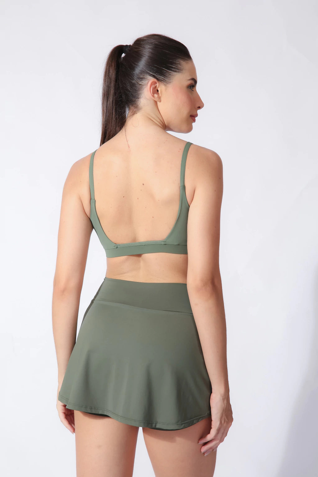 - Modelagem: saia shorts com shorts interno justo ao corpo e bolsos